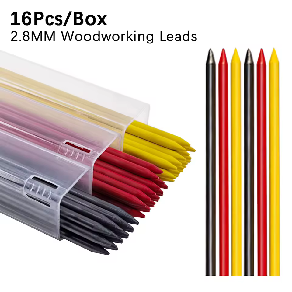16 개/상자 2.8mm 2B 단단한 목수 연필 교체 가능한 리드, 목공 기계 연필 리드 마킹 건축 액세서리